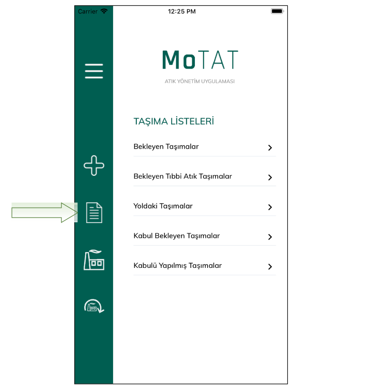 Taşıma listelerini görüntülemek için aşağıda okla gösterilen butona basılmalıdır. Gelen menüde tüm taşıma listeleri görüntülenecektir.